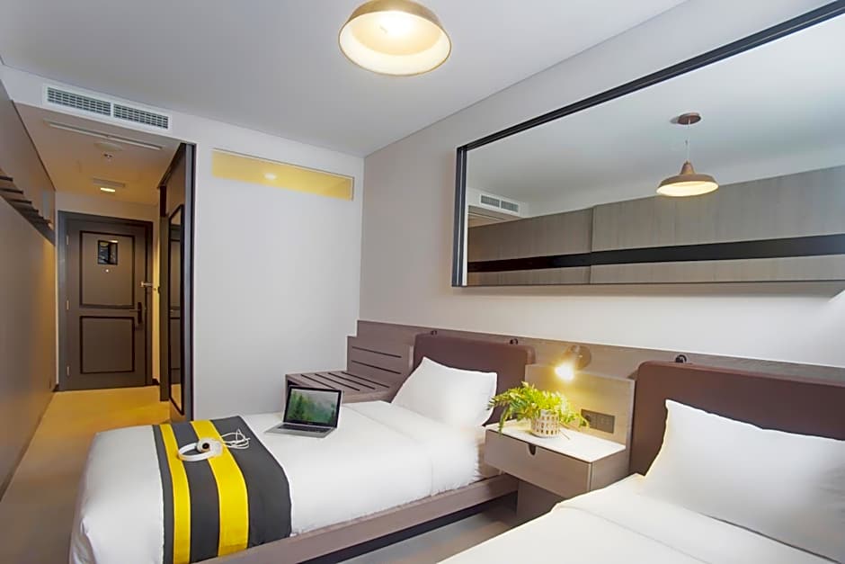 This modern air-conditioned twin room features soundproofing, a 43-inch satellite LED TV and smart room lock. The private bathroom comes with free toiletries and shower facilities.
